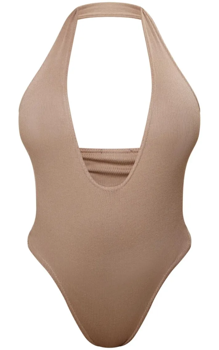 Show off your shape with these shape taupe ribbed halterneck plunge bodysuit. Brought to you in a taupe ribbed material with a halterneck plunge design, what more could you want ? This bodysuit is perfect for those weekend plans and beyond. Team with your fave accessories, a pair of heels and some of your go-to jeans for a look we are loving.