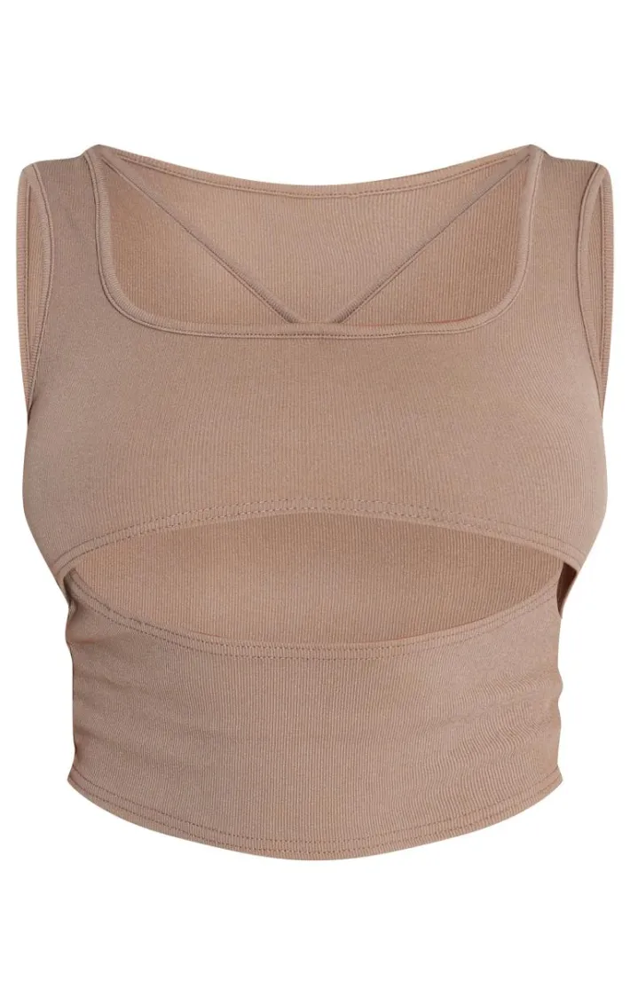 Set major trends this season with this shape taupe ribbed strap detail cut out crop top.Brought to you in a taupe ribbed material, with a strap detail, what more could you want ? Its cut out design and cropped length will have you feeling effortlessly chic all season long. Team with your fave accessories and a pair of heels for a fool proof finish we are obsessing over.