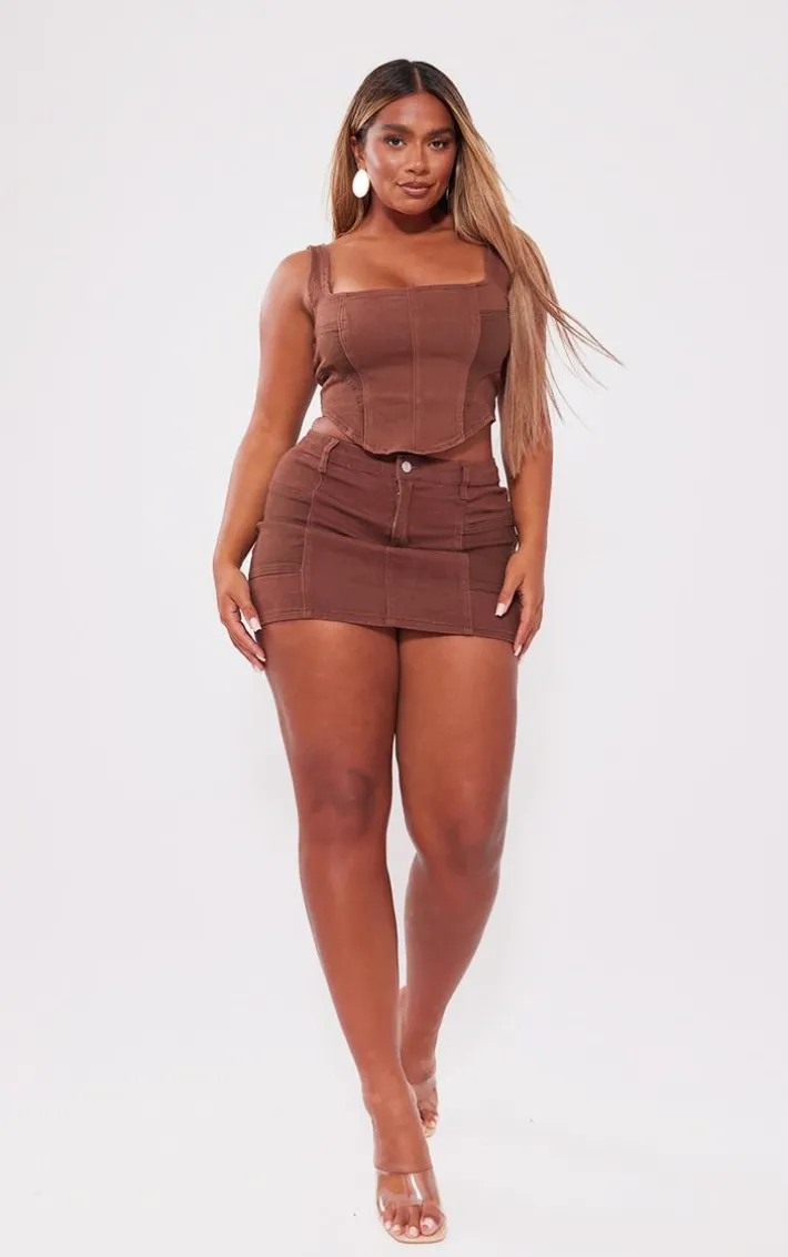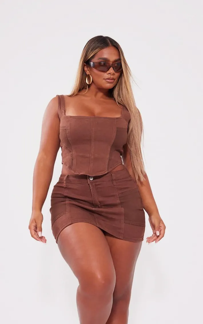 Get ready for the weekend with this shape washed brown denim corset. Made from a washed brown denim material with a square neckline and a figure-flattering fit, how could you say no? This shape corset is the ultimate wardrobe staple and we know you won’t be able to resist. Why not shop the look and team with the matching mini skirt, clear heels and gold accessories for a seriously dreamy finish?