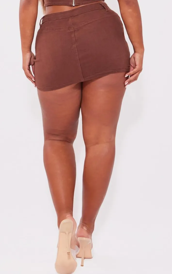 Your weekend fit is finally sorted with this shape washed brown denim micro mini skirt, get ready to have all eyes on you. With a washed brown denim material, a micro mini length and a figure-flattering fit, this shape skirt will have you at the center of attention. Style it with the matching top, clear slip-on heels and your fave accessories for a fool proof finish.