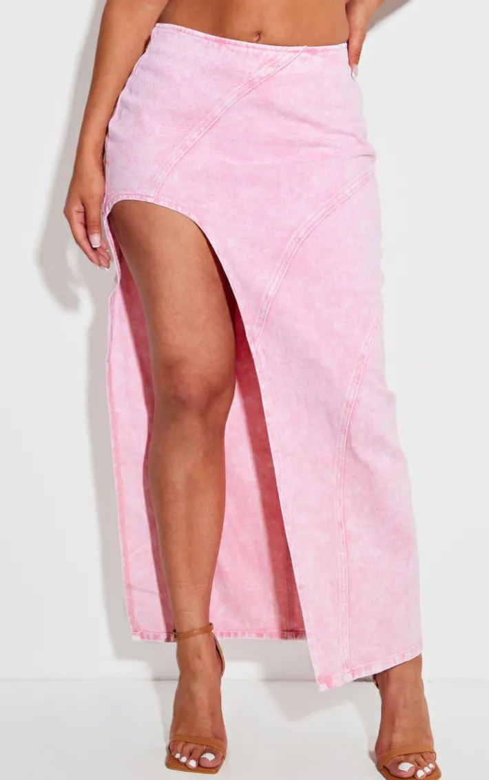Get ready to have all eyes on you with this shape washed pink denim seam detail high split maxi skirt. Brought to you in a washed pink denim material with a seam detail, whatÂ’s not to love? With its high split and maxi length, youÂ’ll be sure to earn all the likes with this dreamy piece. Finish off the look by pairing this with the matching top and a pair of heels. ItÂ’s a yes from us.