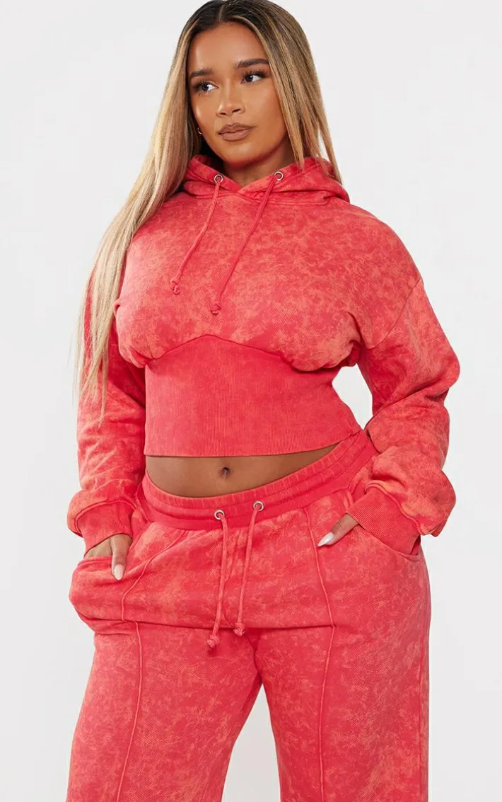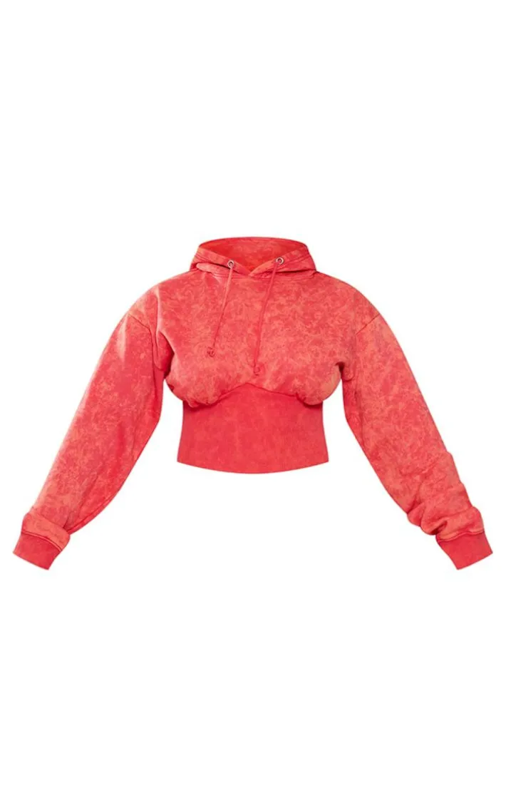Brighten up your new season wardrobe with this shape washed red sweat cropped shirred waist hoodie. Brought to you in a washed red hue sweat material with a shirred waist design and a cropped fit, how can you resist? Pair this shape hoodie effortlessly with the matching sweatpants, heels and gold accessories for a look that will switch up your weekend style game, or why not add sneakers for more of an everyday vibe?