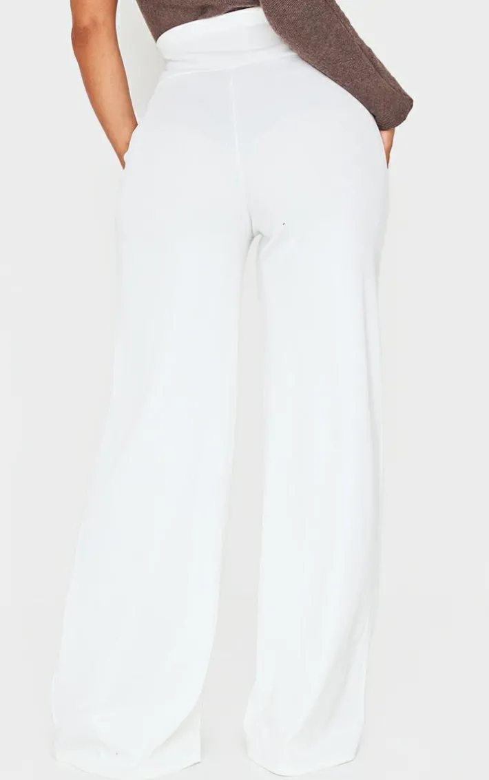 The white trend is in full force this season and we are obsessed. Featuring a white bandage fabric, an elasticated high waistline and a wide leg fit, team them with a matching crop top and killer accessories.