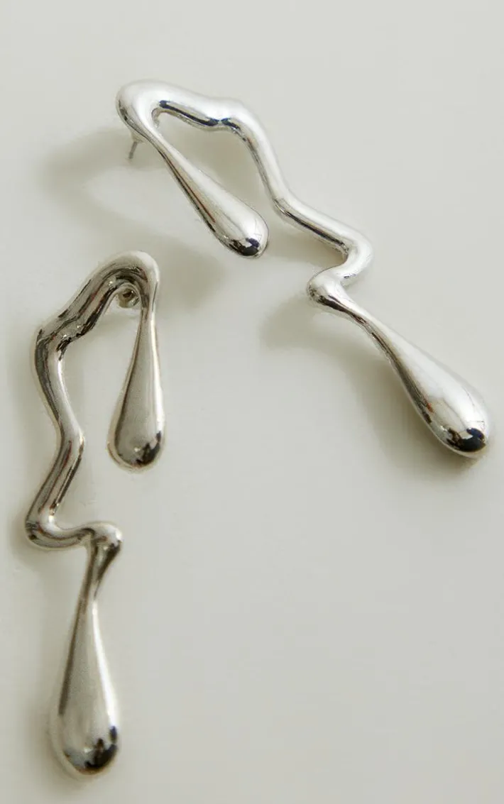 Hit refresh on your new season wardrobe with these must-have silver abstract curved drop statement earrings, they’re the ultimate essential to bring all the attitude to your look. These earrings feature a silver hue material with an abstract curved design and a drop style, you’re sure to be adding straight to basket. Pair these earrings with any outfit of the day to earn all the style points.