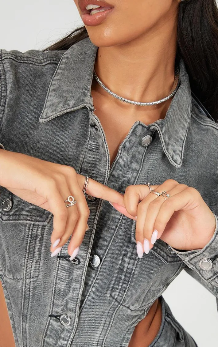 Elevate your outfit of the day with ease with these silver assorted shape twist ring set, you won’t be able to resist. This set features 8 rings all in a silver hue material with assorted shapes and twist detailing, what’s not to love? Pair this ring set with any new season fit for an effortlessly chic finish.