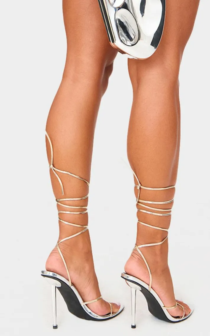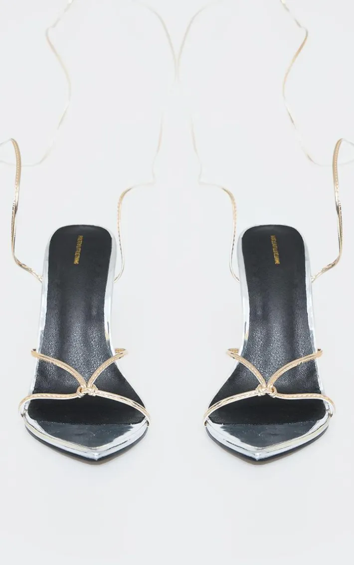 Look all kinds of on-trend with these silver contrast PU point toe lace up heeled sandals. Brought to you in a silver hue contrast PU material with apoint toe design and lace up fastening, these heeled sandals are all the new you need. Style with a chic outfit of the day to elevate the look.