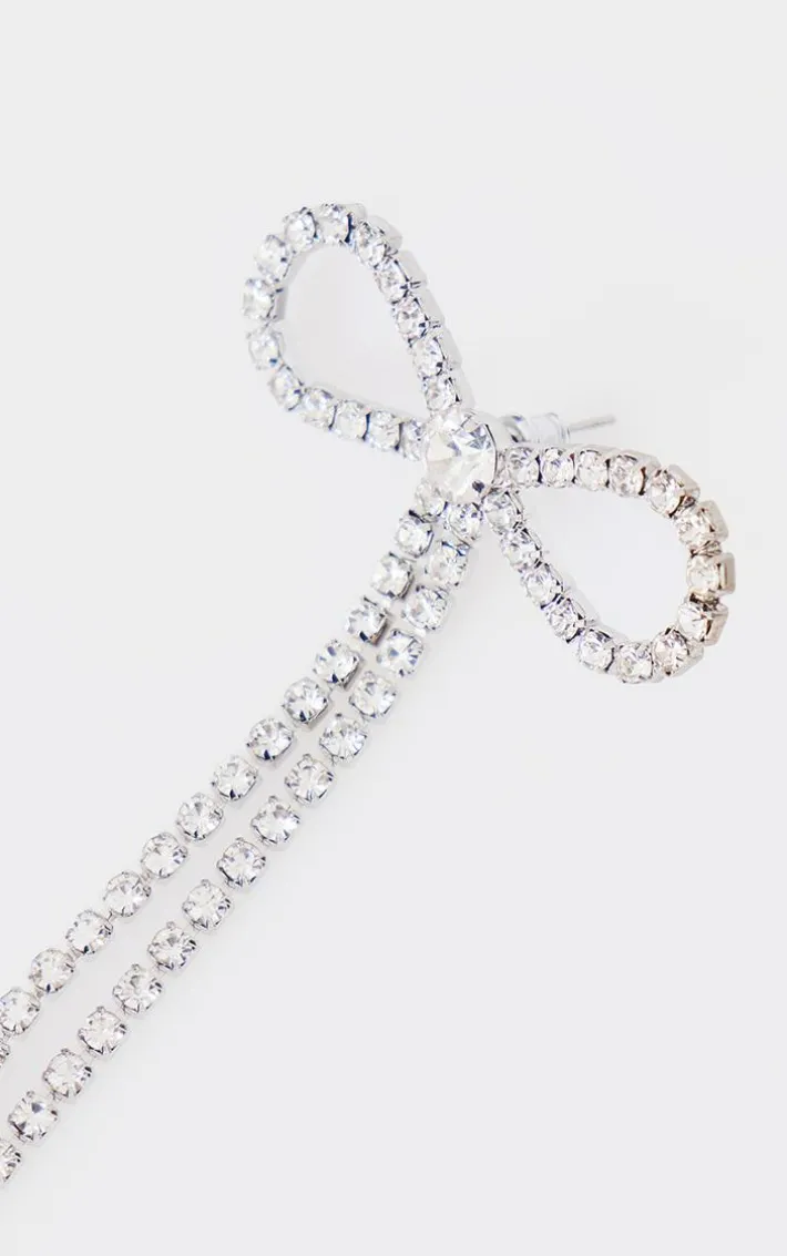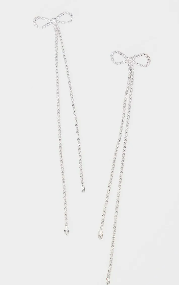 Make everyone stop and stare this weekend with these silver diamante bow long statement earrings. Brought to you in a silver hue material with a bow detail and tassel long design, how could you say no? Perfect for the festive season, these earrings are everything you’re looking for and more.