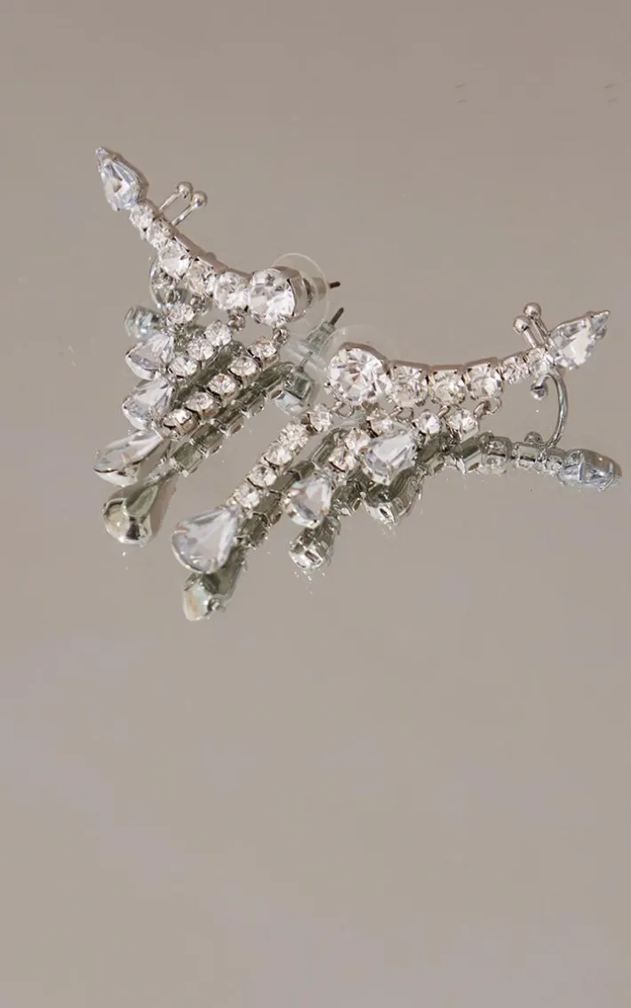 Get ready to make a statement in these seriously glam earrings. Featuring a silver diamante material with a drop ear climber design, we’re in love. Just add to your weekend fit to instantly elevate the look.