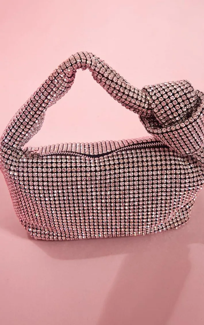 Your weekend wardrobe wouldn’t be complete without this silver diamante slouchy knot shoulder bag, you won’t be able to resist. With a silver hue material, diamante detailing and a knot design, you’ll be nailing major trends with this shoulder bag. Pair it with your fave new season fit for a look we just can’t get enough of.