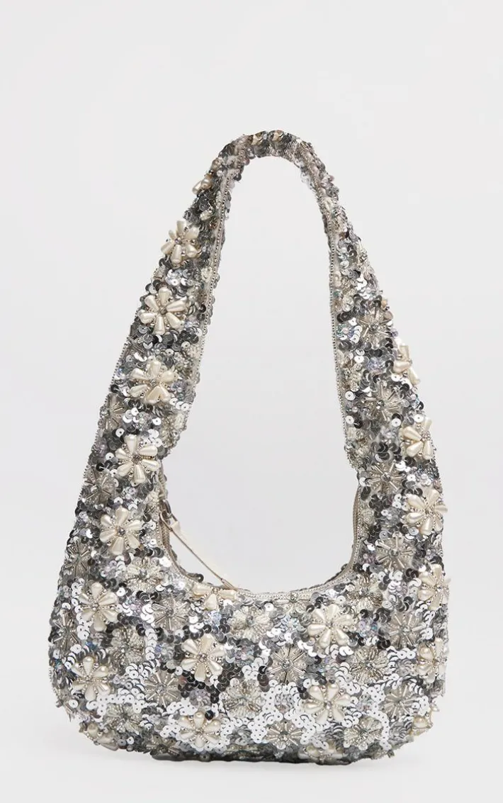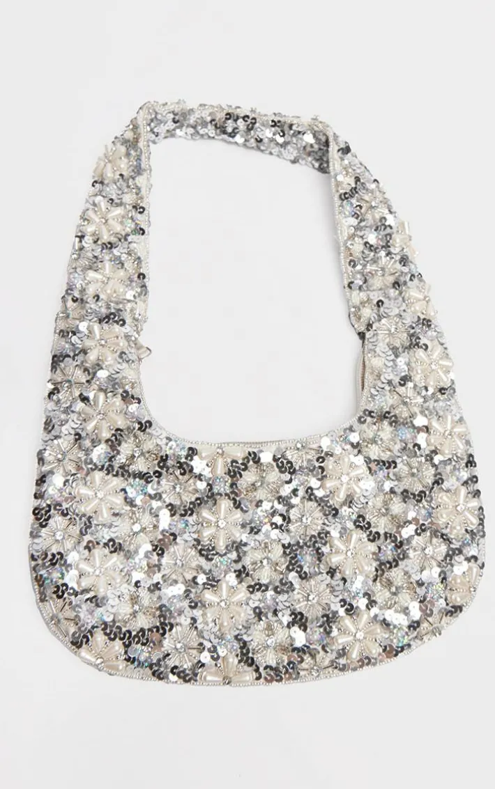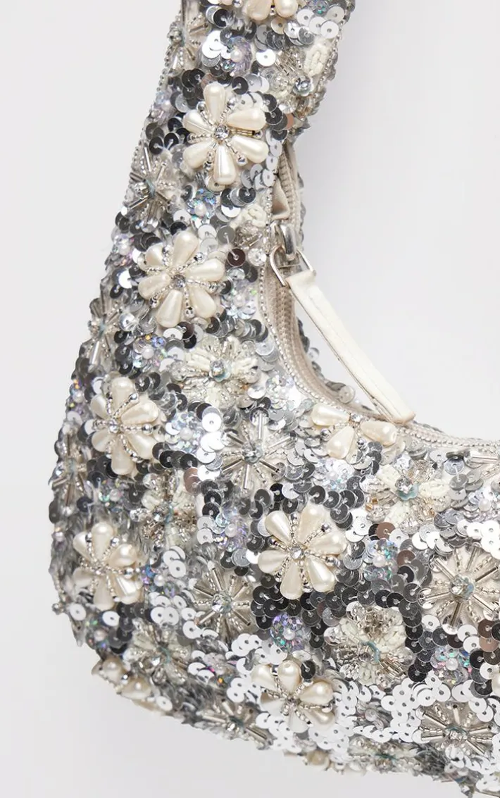 Have all eyes on you this season with this silver flower sequin handbag. Brought to you in a silver sequin material with a flower design, this handbag will solve all your ‘how to accessorise’ dilemmas. Style with a sequin blazer fit for a glam finish. It’s a yes from us.