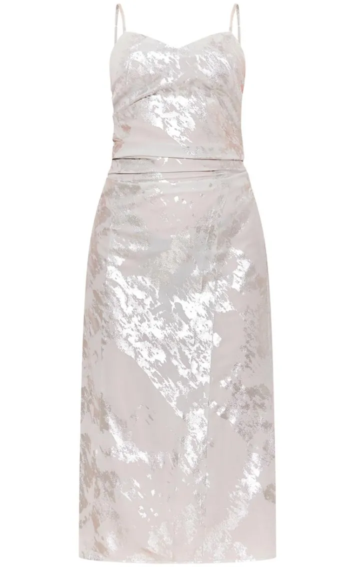 Shine bright in this silver foil print cowl neck midaxi dress. Brought to you in a silver foil print material with a cowl neck design, it’s a yes from us. Style this midaxi dress with clear heels and silver accessories for a look that won’t miss.