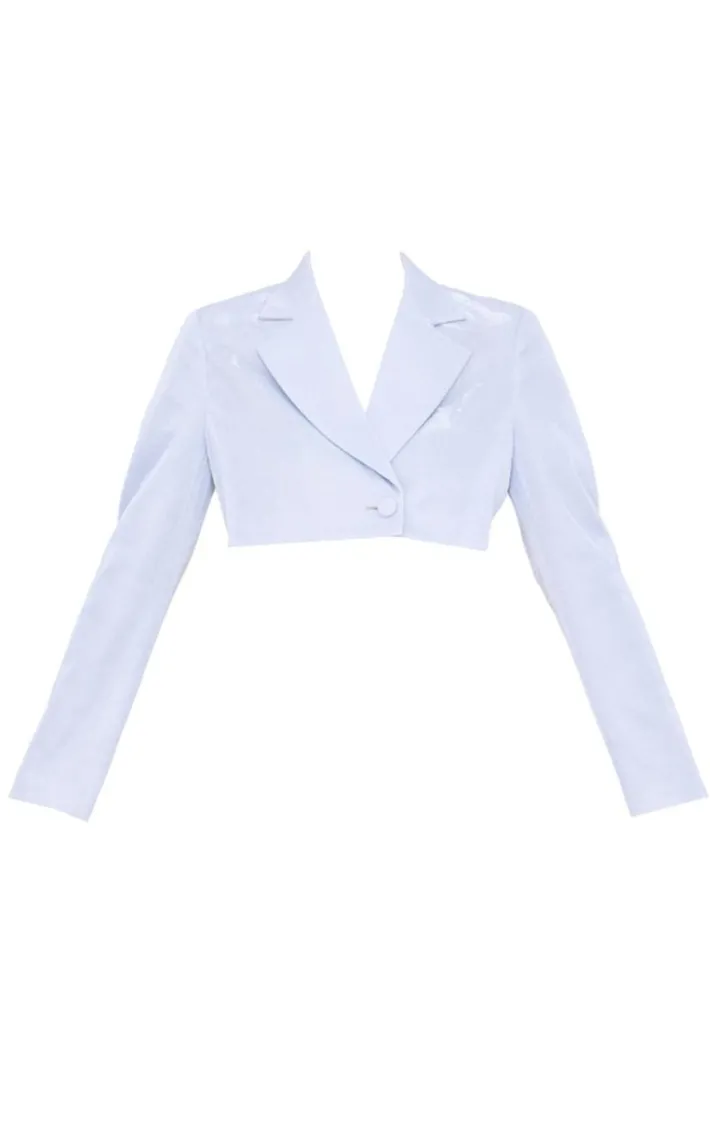 Make a statement with this silver glitter single breasted cropped blazer. Brought to you in a silver glitter material with a single breasted design and a cropped length, you are sure to stand out from the rest. Team this blazer with your fave heels and some faux leather pants to earn major styling points this season.