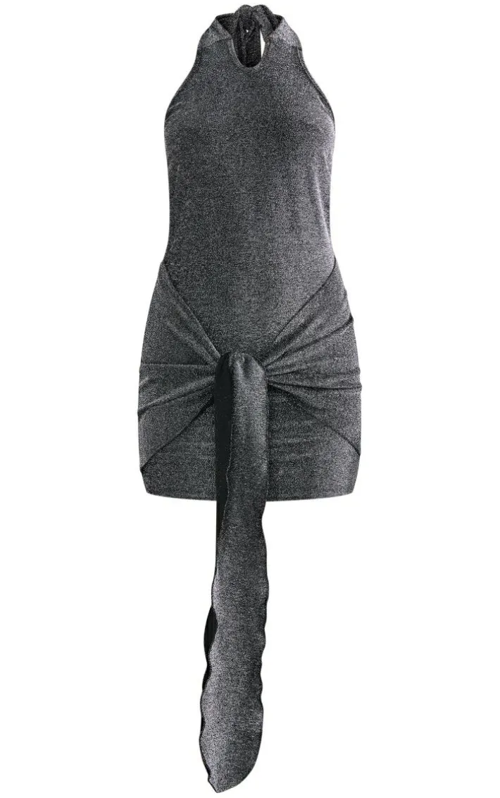 Get ready to look all kinds of glam in this silver glitter textured cut out halterneck bodycon dress. Brought to you in a silver hue glitter textured material with a haltrerneck design, cut out detailing and a flattering bodycon fit, how can you not fall in love? Style this bodycon dress with heels, luxe accessories and a clutch bag for a look that is sure to have eyes on you for all the right reasons.