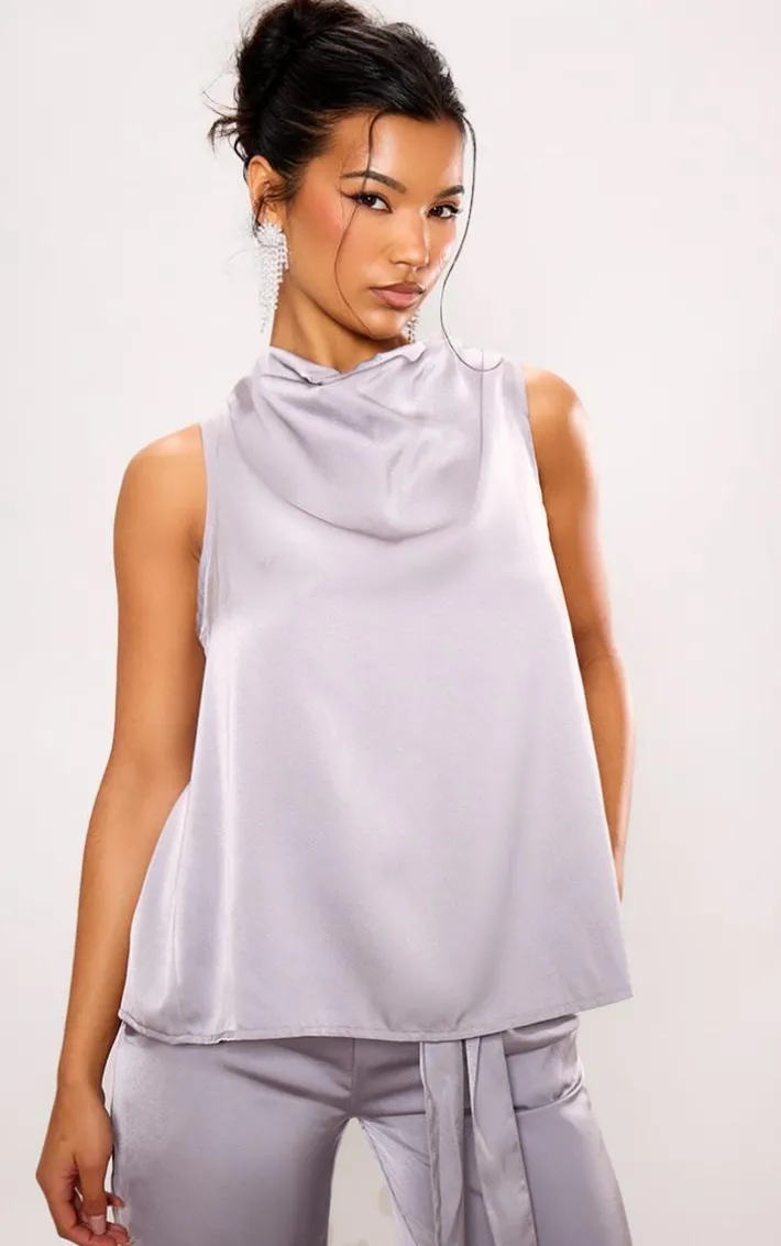 Looking to switch up your occasion style? We’ve got you covered with this unreal silver grey satin open back longline top. Brought to you in a luxe silver grey satin material with a dramatic open back design and a longline fit, you really can’t go wrong. Style this longline top seamlessly with the matching pants, your go-to pair of heels and some glam accessories to bring the look together.