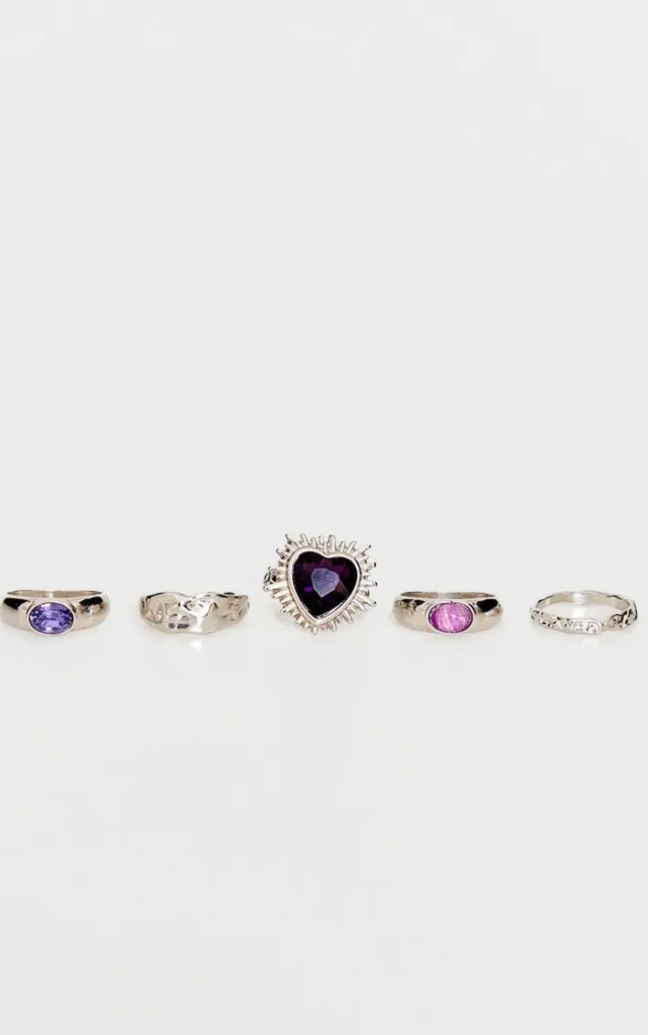 Elevate your outfit of the day with this silver heart and jewel crinkle multi pack rings. Brought to you in a silver hue material with a heart and jewel design and crinkle detail, this multipack of rings is a must have. Add to your fave look for a chic finish.