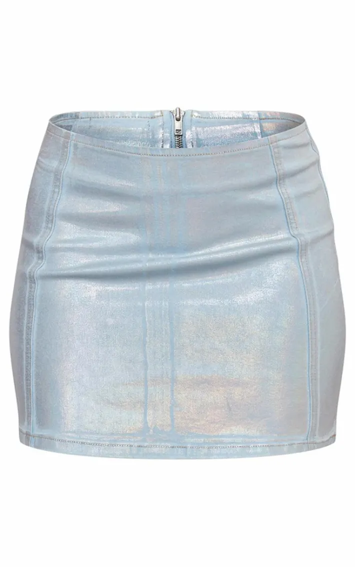 Amp up your weekend look with this silver metallic coated denim micro mini skirt. Brought to you in a silver metallic coated denim material with a flattering micro mini fit, what more could you ask for? Style this micro mini skirt with the matching top, heels and accessories for a look that will have all eyes on you.