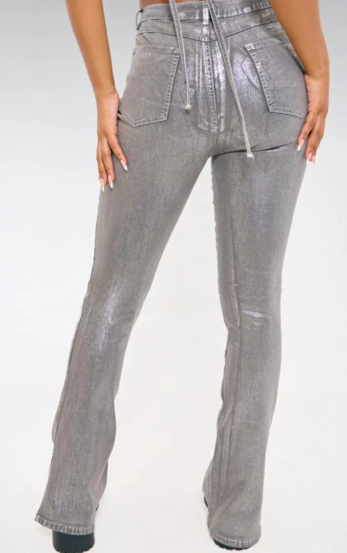 You won’t blend into a crowd with these silver metallic foil effect flared jeans. This silver metallic shade will have you reaching for these every weekend an beyond, and the foil effect detail has us obsessed. If you’re after a new figure-flattering addition, these flared jeans are calling your name. Style with the matching top, black boots and a shoulder bag for a look we’re in love with.