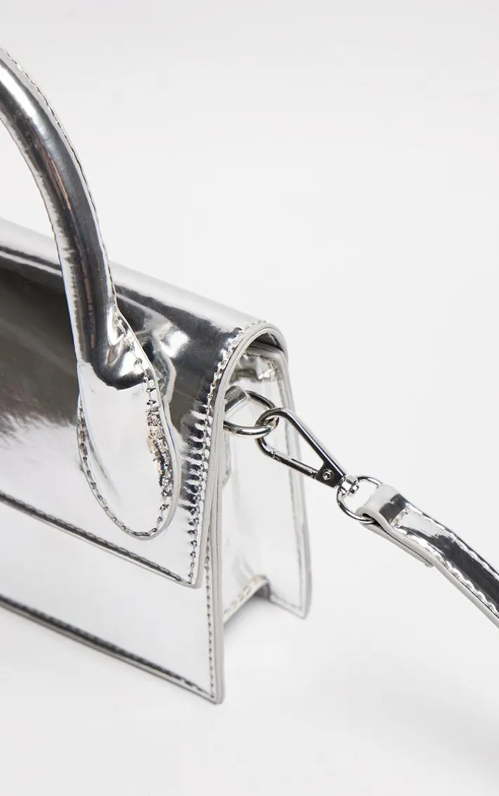 Bring all the luxe vibes to your weekend look with this silver metallic PU rectangle crossbody bag. Made from a silver metallic PU material with a rectangle design and a removable crossbody strap, we are obsessed. Style this silver bag with your fave wardrobe pieces to instantly elevate any look.