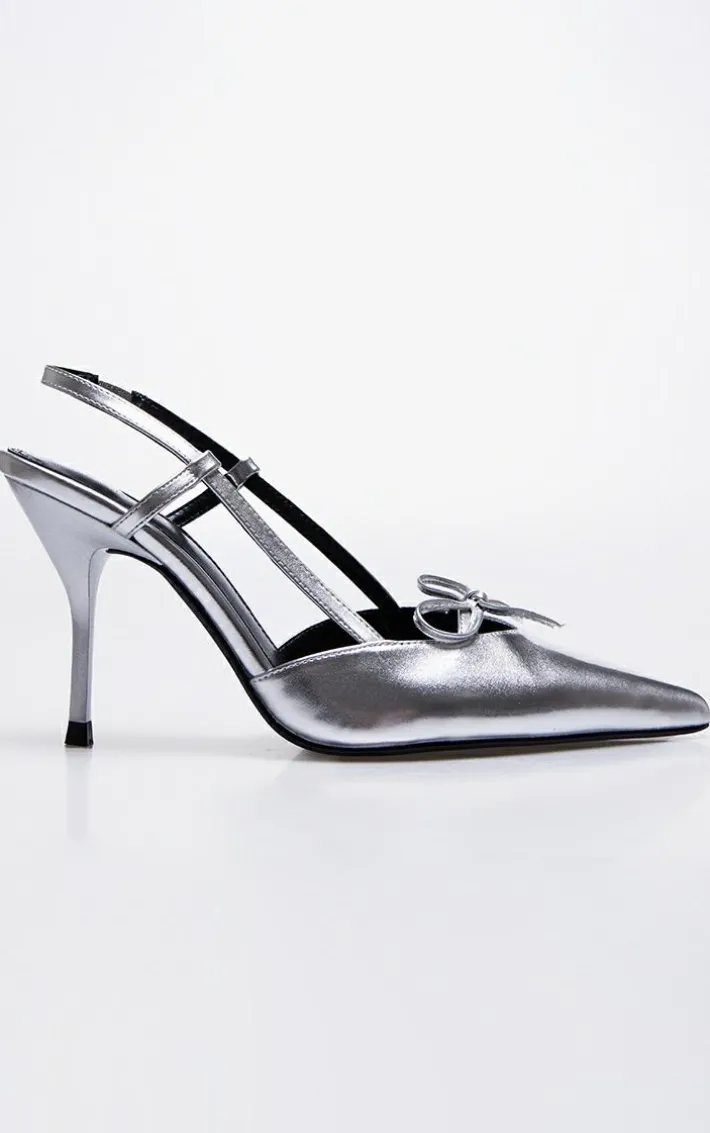 Bring all the chic vibes with these silver PU patent point toe bow detail mid heel courts. Brought to you in a silver PU patent material with a point toe and a bow detail that is sure to bring all the edge to your look. These mid heel courts are sure to elevate your look instantly. Style with your fave look to turn heads this season and beyond.