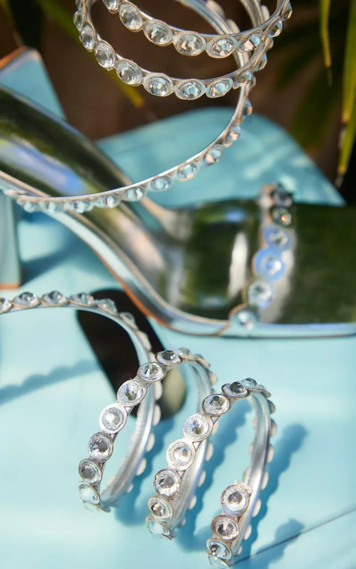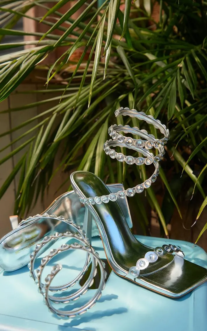 Go for all the attitude this weekend with these silver PU square toe metallic crystal spiral heeled sandals, you’re sure to have heads turning. Brought to you in a silver PU material with crystal detailing and a square toe design, we’re seriously obsessing over these sandals. Pair with your fave weekend fit for a look that will get everyone talking.
