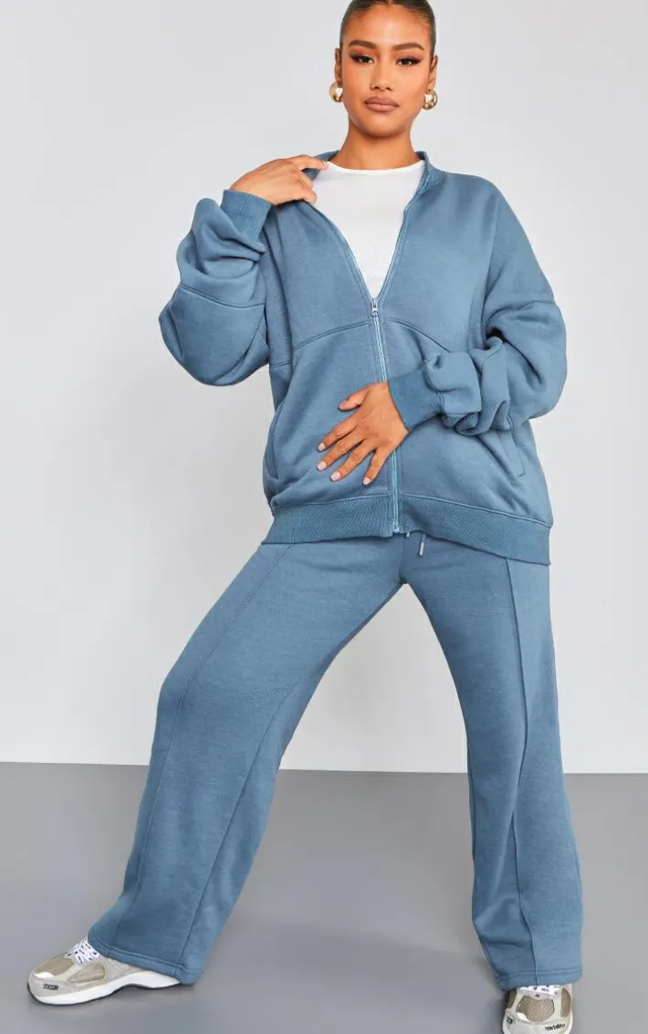 Add some neutral tones into your off-duty wardrobe with these steel blue oversized pintuck wide leg sweatpants. These sweatpants are brought to you in an steel blue material with an oversized design and a wide leg fit, what’s not to love? These sweatpants are here to banish any of your what-to-wear dilemmas. Pair with the matching jacket, box-fresh kicks and accessories for a vibe like no other..
