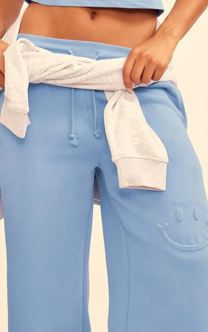 Amp up your off-duty wardrobe with these steel blue smile embossed wide leg sweatpants. Brought to you in a steel blue hue material with a smile embossed design and wide leg fit, these sweatpants are at the top of our wish list. Style with the matching top, your fave hoodie and fresh kicks for a chic sweatpant set we can’t get enough of.