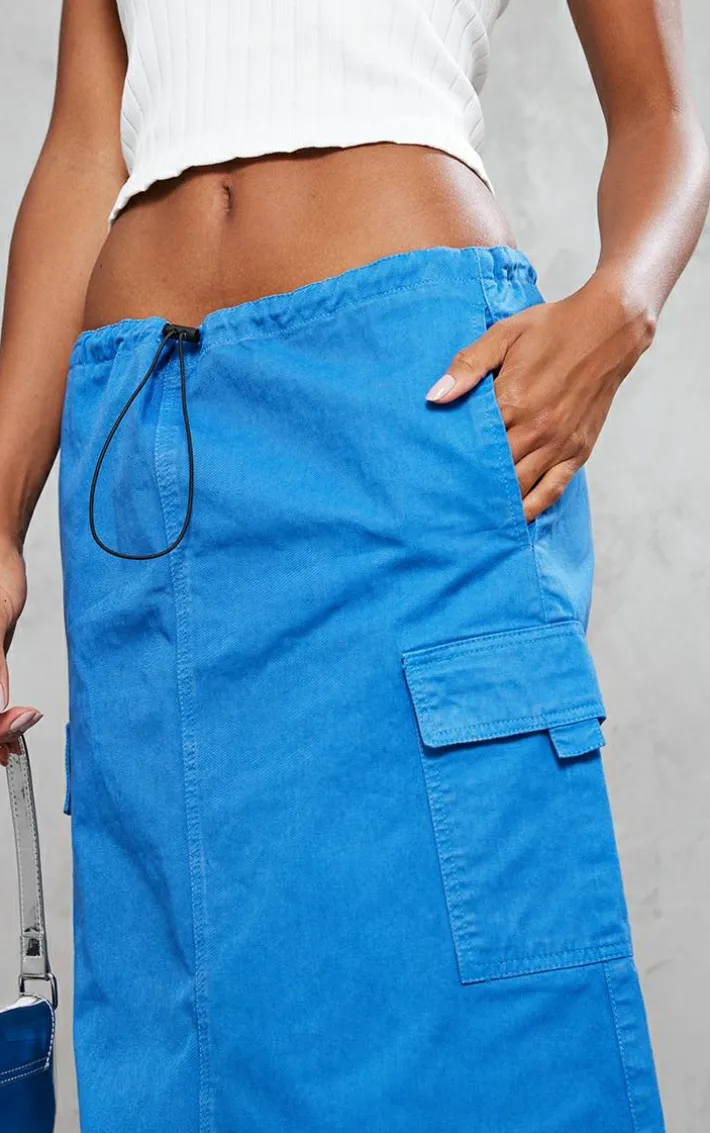 Get ready to nail new season trends with this steel blue twill toggle washed midaxi skirt. In a statement steel blue twill material and with an on-trend ttoggle design, this midaxi skirt will have you earning some serious style points all season long. Keep your off-duty vibe on point and Style this steel blue skirt with a white bandeau top and fresh kicks for a fierce everyday look like no other.