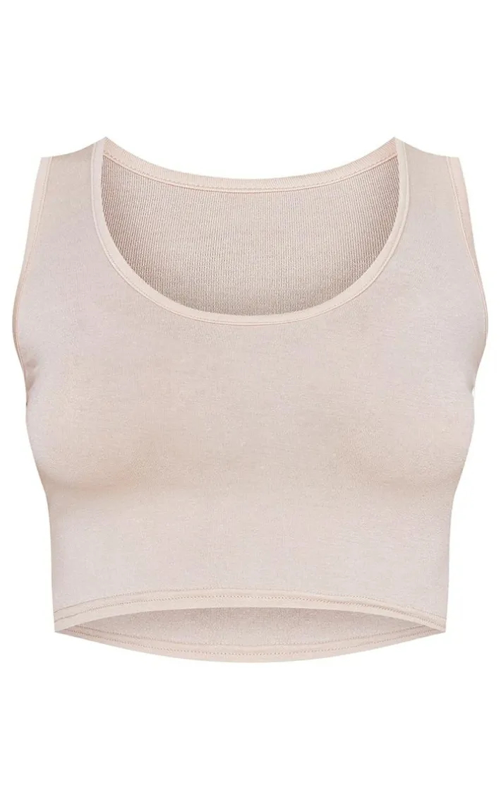 Meet your new season wardrobe essential with this top. Featuring a stone hue material with a scoop neck design and a cropped length. Wear with tailored bottoms, an oversized blazer and fresh kicks for the ultimate off-duty vibe.