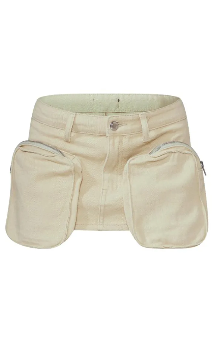 Enter the new season in style with this stone cargo pocket mini denim skirt. Made from a neutral stone hue denim material that can be styled seamlessly with any ‘fit and featuring a cargo pocket style that we are loving right now, how can you resist this mini skirt ? Style with a flattering corset top, bold hue heels and statement accessories for a look that will have all eyes on you.