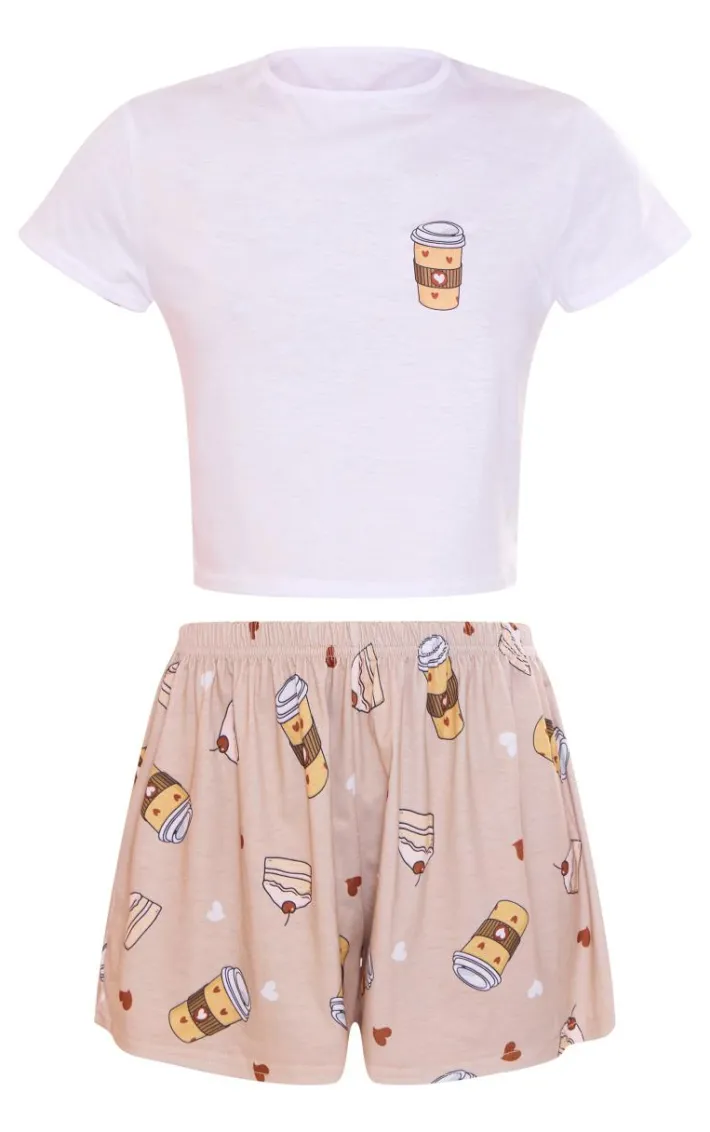 Go for all the cosy but chic vibes in this dreamy stone coffee print short PJ set, we just can’t get enough. This set features a white tee and stone hue shorts both with a coffee print and a relaxed fit. Team this coffee set with slippers and your fave accessories for the perfect chilled night in fit.