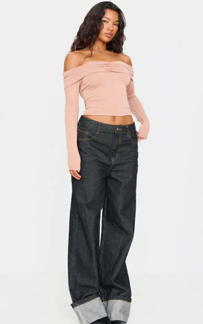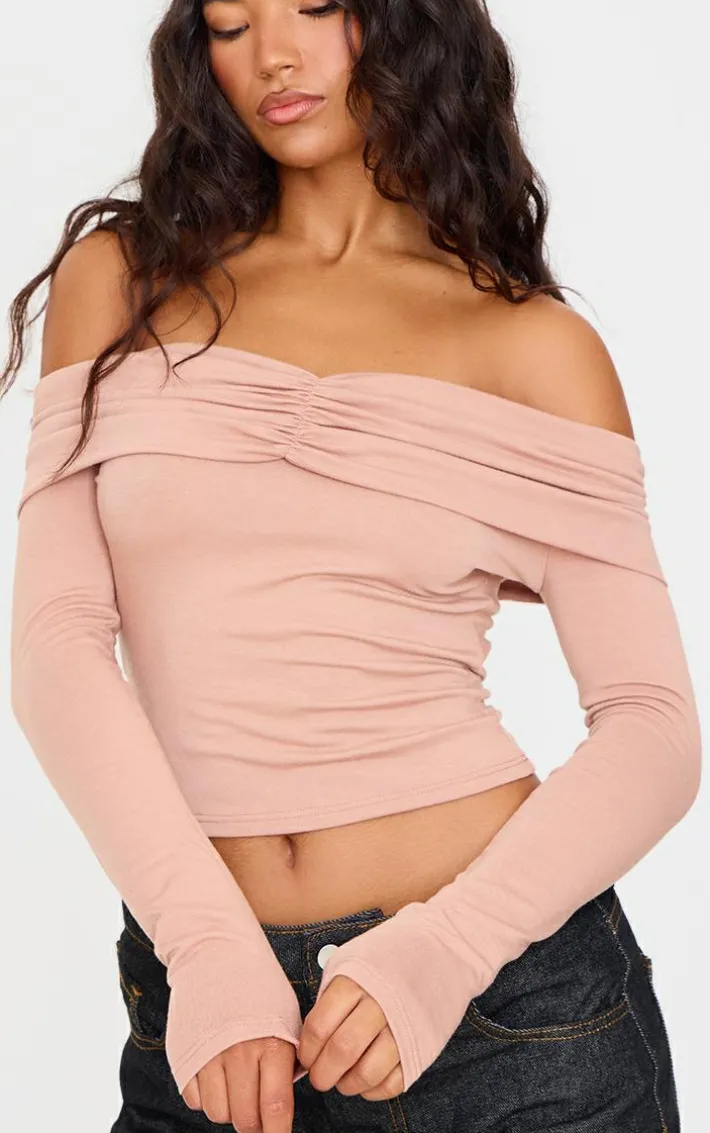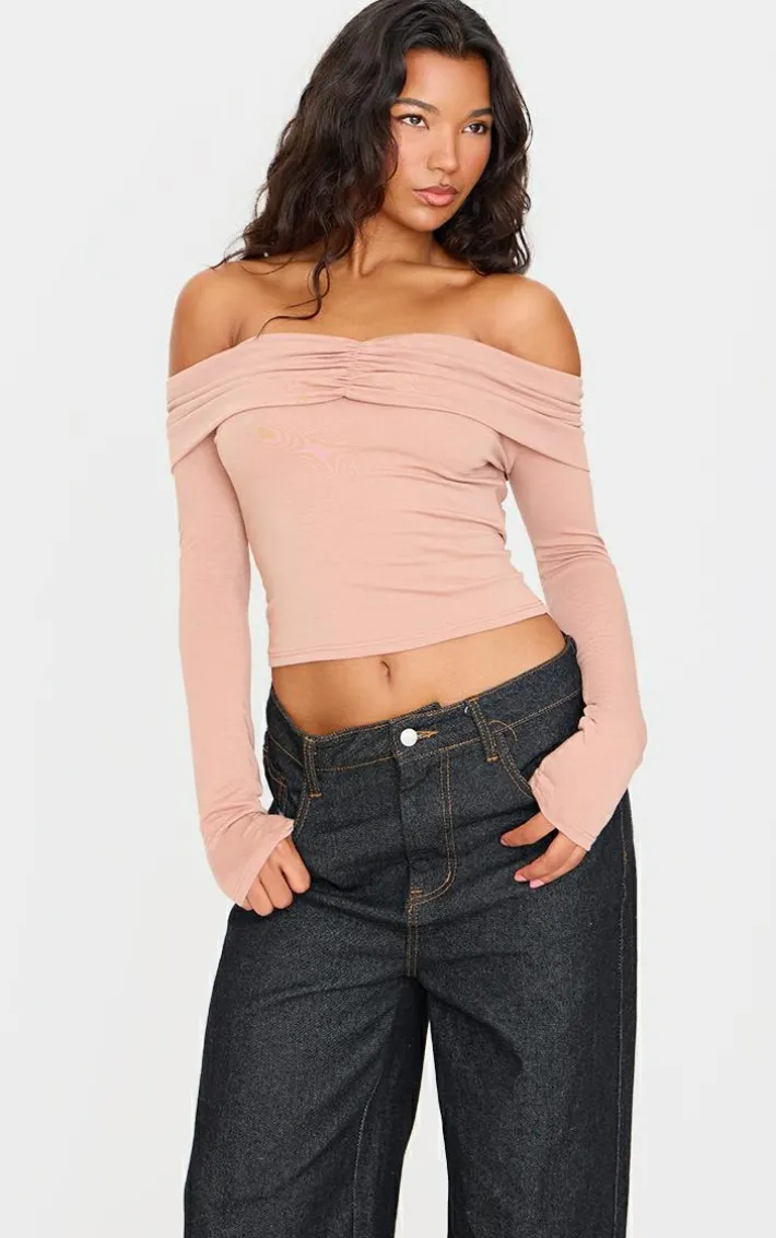 This stone contour jersey ruched foldover bardot crop top is all the new you need for the season ahead. Brought to you in a stone jersey material with a ruched foldover design, we are obsessed. This bardot crop is the perfect addition to your weekend wardrobe. Team with a pair of wide leg jeans and your go-to sneakers for a look we are loving.