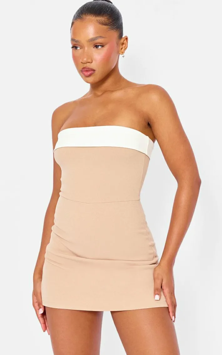 Get your glam on with this stone contrast fold over bandeau romper. Brought to you in a stone material with a contrast fold over design, what more could you want? This bandeau romper is all you need to stand out from the rest. Team with your fave accessories and a pair of heels for a fool proof finish like no other.