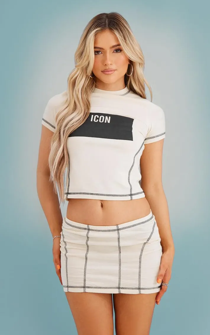 This stone contrast stitch extreme low rise micro mini skirt is bringing all the drama for your next weekend look. Made from a stone hue material with contrasting stitch detail, an extreme low rise design and a micro mini fit, what more could you want? Style this mini skirt with a matching tee, chunky heeled boots and statement for a fierce weekend-worthy combo like no other.