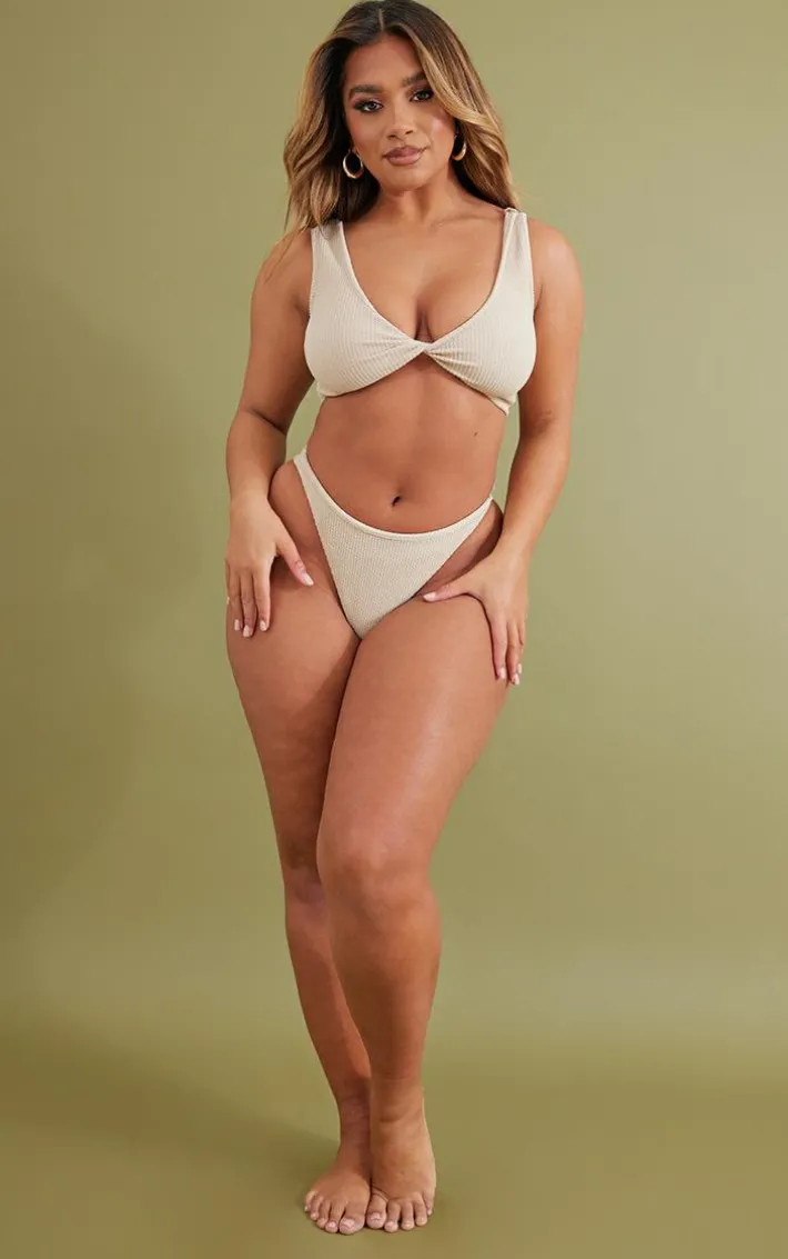Take your vacay collection to a whole new level with this staple stone crinkle fuller bust bikini top. Made using a stone crinkle hue material with a flattering fit that is sure to show off that unreal shape, what more could you ask for? It’s simply perfect. For the ultimate beach babe vibe be sure to wear with the matching bottoms, gold hue accessories and sandals to earn all the likes this season.