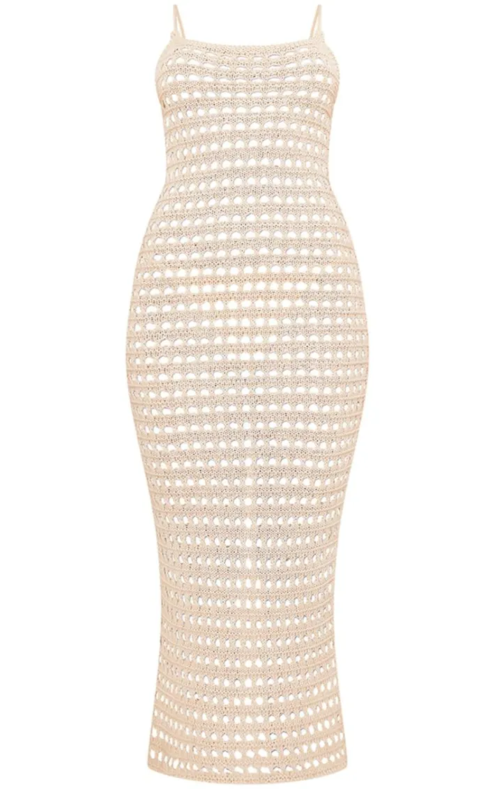 Level up your knitwear wardrobe with this stone crochet strappy maxi dress. This maxi dress is brought to you in a stone crochet material with a strappy design and a maxi length, what’s not to love? This maxi dress will have all eyes on you. Team this with your sandals and gold accessories for a chic finish.