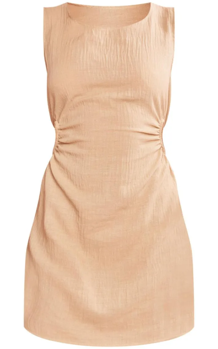 Bring all the linen feels to your new season wardrobe with this stone crushed linen look scoop neck shift dress. Made from a stone hue linen look material with a scoop neck design and a flattering shift style, how can you resist? Pair this shift dress with sandals and simple gold accessories to complete the look we’re loving.