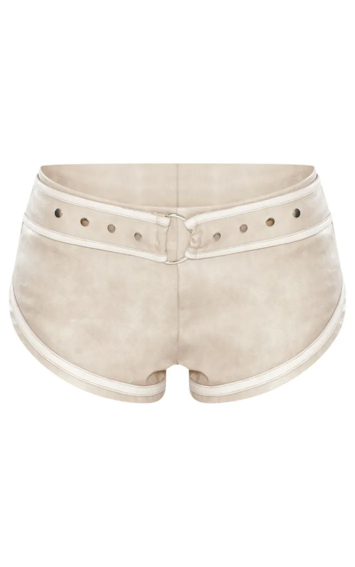Bring all the drama to your new season wardrobe with these stone faux leather belted hot pants, we’re in love. These hot pants feature a stone hue faux leather material with a belt detail and a figure-worshipping fit. Pair these faux leather hot pants with the matching top, slip-on heels and your fave accessories for a fierce finish.