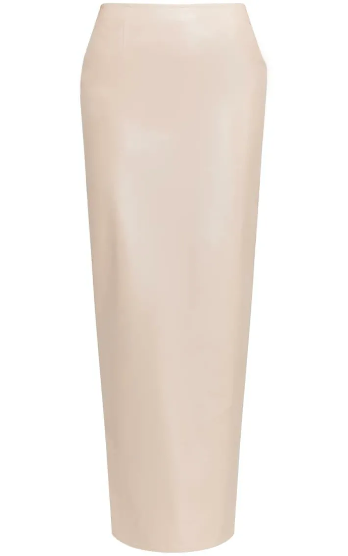 We are all about neutral hues this season and this stone faux leather high waist split hem maxi skirt is sure to keep you weekend look on point. Brought to you in a stone hue faux leather material with a flattering high waist design, split hem detail and a maxi length, how can you say no? Style this maxi skirt with the matching top and your highest heels for a look that will steal the stares.