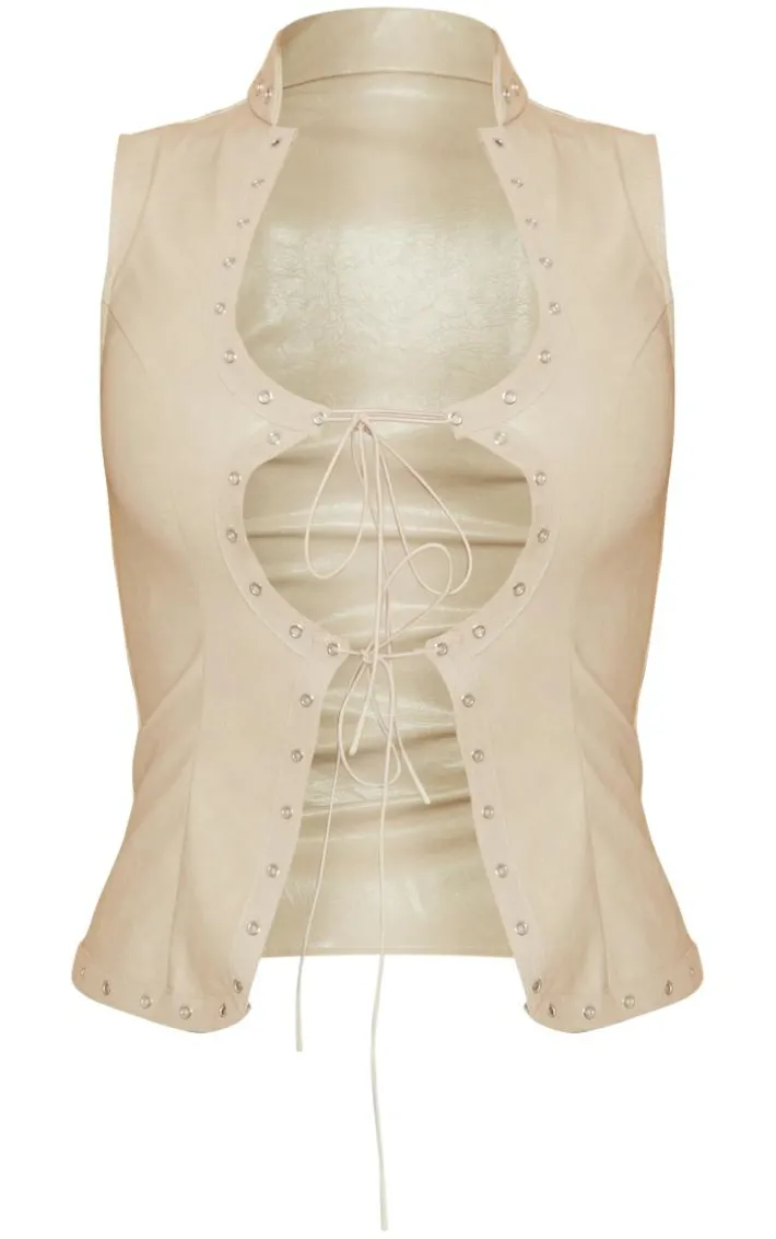 Take your weekend look to a whole new dimension with this stone faux leather lace up cut out plunge sleeveless long top. This top is brought to you in a stone faux leather material with a lace-up front and a cut-out design, what’s not to love? This top will have you being the topic of everyone’s conversation. Pair this top with a denim midaxi skirt, high heels and accessories to finish the look.