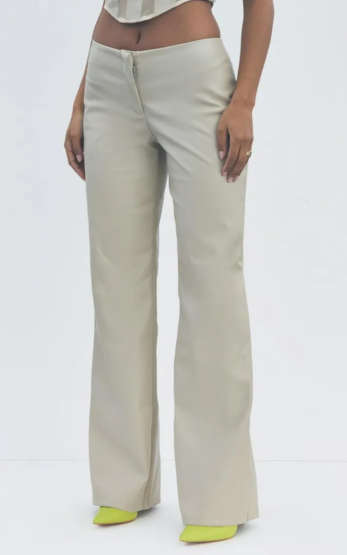 Switch up your style game with these unreal stone faux leather low rise wide leg pants. These pants are made from a stone faux leather material as well as feature a low-rise fit and a wide-leg design, what’s not to love? Whatever your plans are for the weekend doll, these pants are the answer to all your what-to-wear dilemmas. Style effortlessly with a matching hue top and bold heels for the perfect weekend-ready fit.