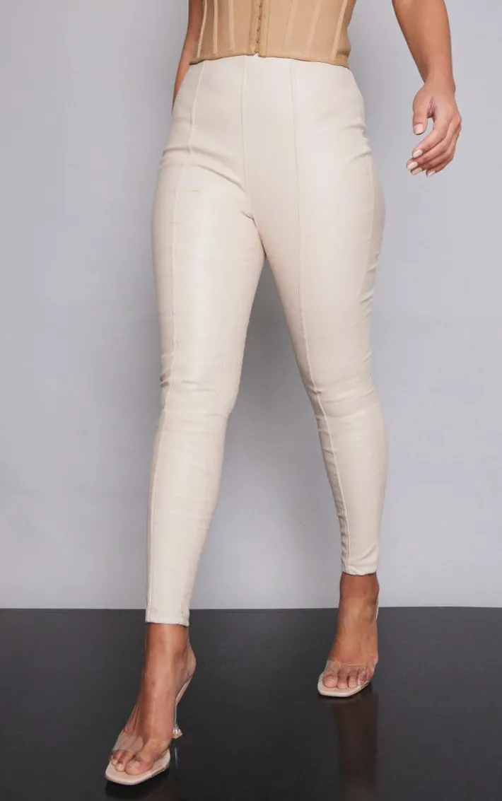 Neutral tones are a must this season and we are loving these leggings. Featuring a stone faux leather stretch material with seam detailing and a flattering fit. For a brunch date , style with a cream crop top, oversized blazer and mules.