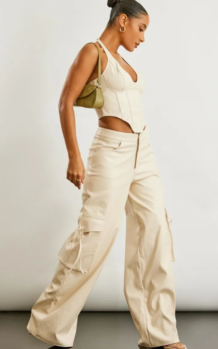 Hit refresh on your new season wardrobe with these stone faux leather wide leg cargo pants. They feature a stone hue faux leather material with a wide leg fit and a cargo style. Just add the matching top and slip-on heels for an effortlessly chic finish.