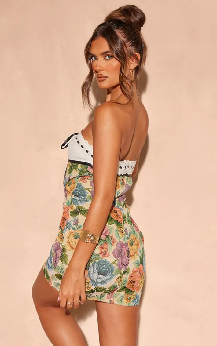 You are guaranteed to steal all the stares in this stone floral twill contrast bandeau bodycon dress. Brought to you in a stone hue twill material with a floral print design, a bandeau neckline and a figure-flattering fit, how can you say no? Style this bodycon dress with heels and gold accessories for a look we just can’t get enough of.