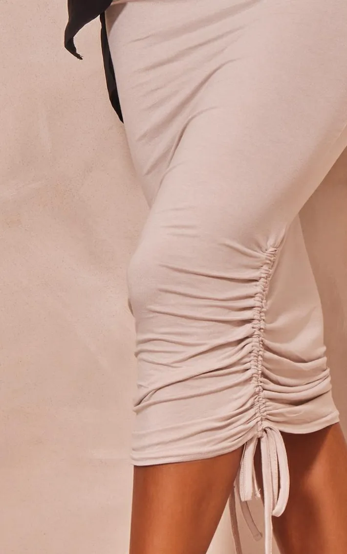 Calling all our neutral-loving s to check out this stone jersey ruched side midaxi skirt. Its stone jersey material is the perfect addition to your wardrobe and its ruched detailing gives a super flattering fit. With endless styling potential, you are sure to be reaching for this midaxi skirt again and again. Simply pair it with a basic crop top, chunky sandals and gold accessories for a look that won’t go unnoticed.