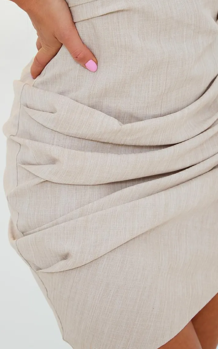 Look all kinds of glam in this stone linen look fold-over ruched bodycon dress. This dress is perfect for those plans. With a stone linen material and a fold over design, this dress is at the top of our new season wish list. Team with some slip on clear heels and a statement shoulder bag to complete the look everyone will be obsessing over.