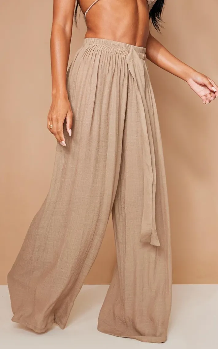 Take your beach look the extra mile with these bottoms. Featuring a stone linen-look material with a palazzo design and flattering fit, we are in love. Wear with your fave bikini set to finish the look.