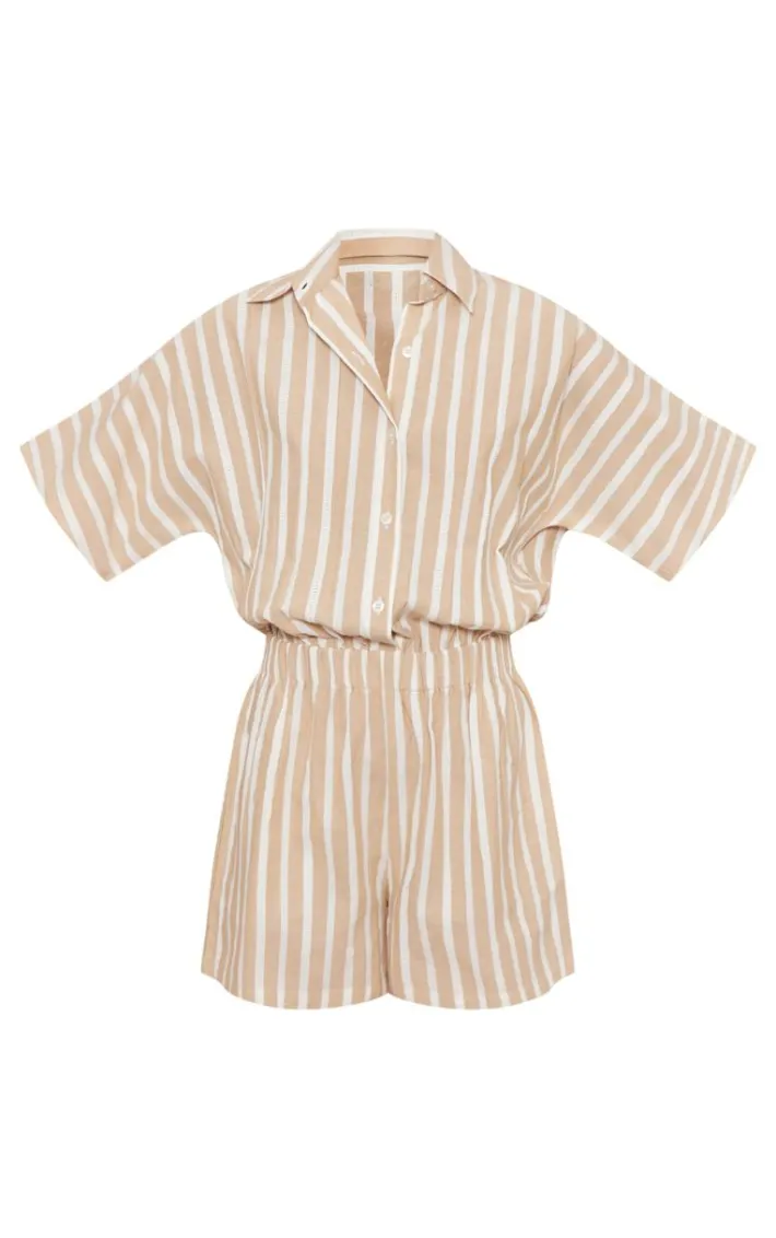 We’re all about neutral hues this season and this stone linen pinstripe button up shirt detail romper is here to solve all your styling dilemmas. With a stone linen look pinstripe material, a button up front and a shirt design, you won’t be able to resist this romper. Team this with sandals and accessories for an effortlessly chic look everyone will be asking about.