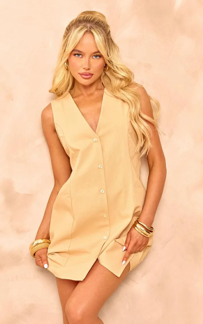 Say hello to your new season wardrobe essential with this stone long line button up bodycon dress. Brought to you in a stone hue material with a long line design and button up detail, this bodycon dress is dreamy. It’s official, we’re seriously obsessed. Style this longline dress with sandals and gold accessories for a chic finish.
