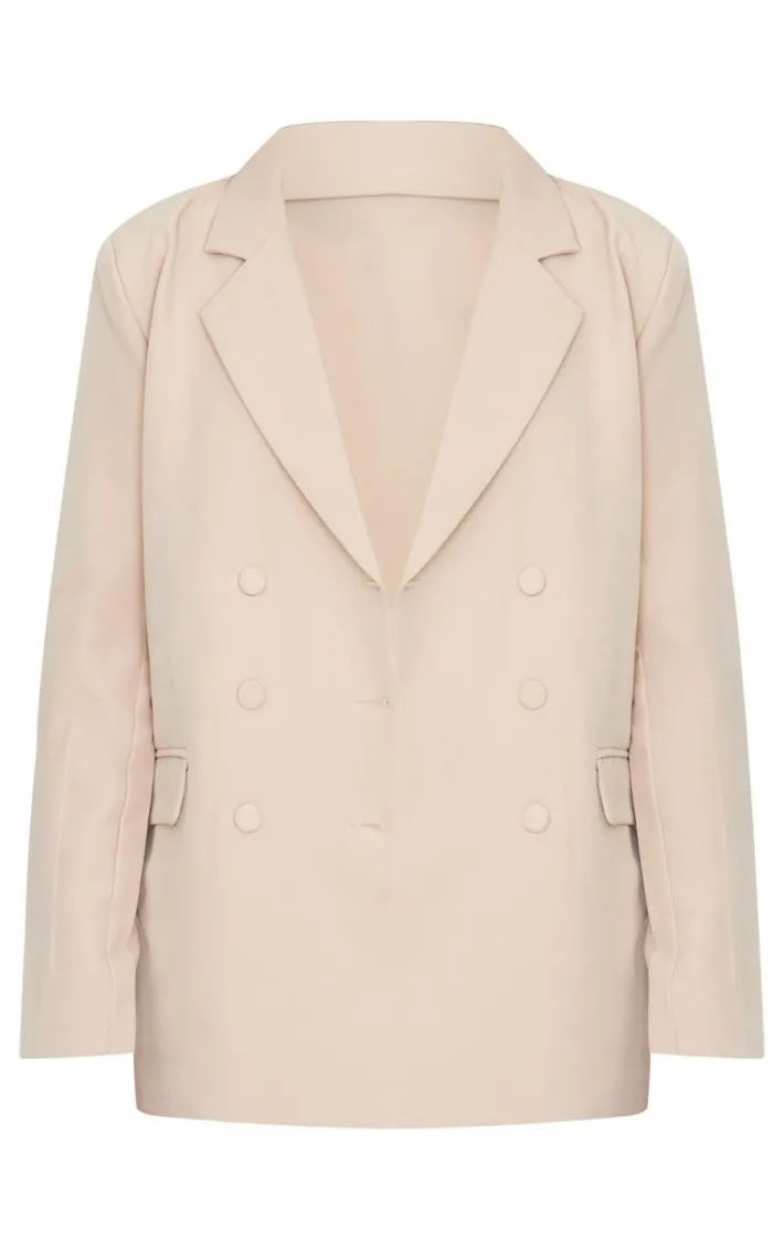 Add some chic vibes to any look with this stone oversized double breasted covered button blazer. Made froma stone woven material with an oversized fit and button-down design, how can you say no? Team this stone blazer with a mini skirt, a top and heels for look we’re loving for your weekend plans.