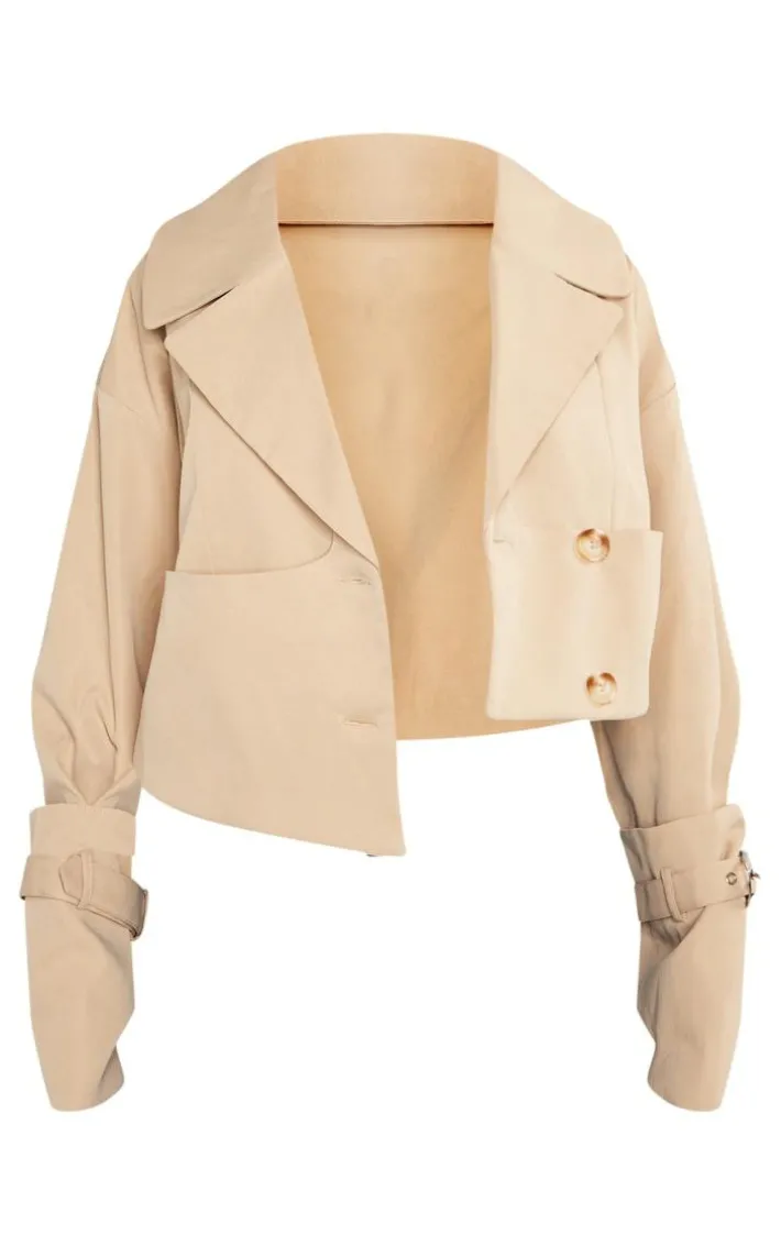 Your wardrobe wouldn’t be complete without this stone panelling detail crop trench coat and we know you won’t be able to resist adding it to your basket. Made from a stone hue material with panel detail and an asymmetric hem, how could you not be in love? The perfect styling piece that will add that extra chic touch to any look, this trench coat is a yes from us. Team with a statement denim maxi skirt, knee-high boots, and silver accessories for a flawless finish.